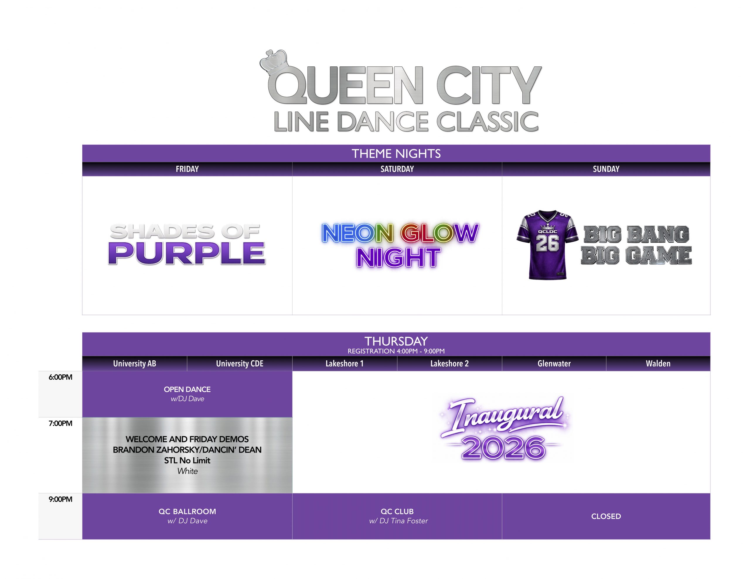Find your 2026 inaugural Line Dance Grid below. You view each day of the grid below or click the “Download” button to download a printable PDF version of the file.